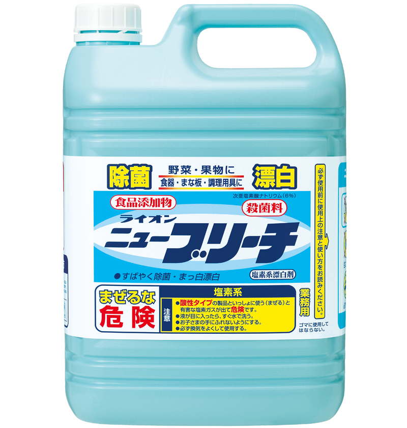 食品添加物タイプの塩素系漂白剤。野菜・果物・食品加工等の殺菌、食品に触れる厨房器具の除菌・漂白に。台所用洗剤ではとれないシミ・茶しぶ・プラスチック製品の黒ずみを落とし、バイ菌を取り除きイヤなニオイを消します。次亜塩素酸濃度:6%。